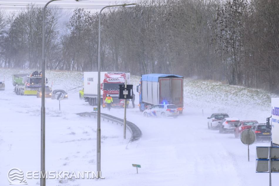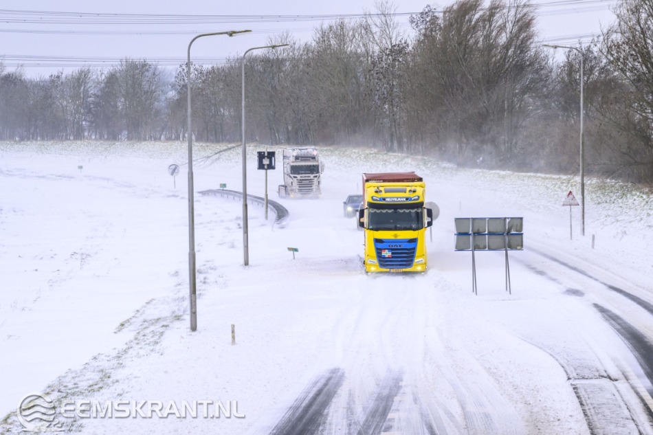 Appingedam – De N33 tussen Steendam en Appingedam is vrijdagmiddag urenlang afgesloten geweest nadat een vrachtwagen vast kwam te zitten in stuifsneeuw. Door de harde wind had zich op meerdere plekken sneeuw opgehoopt op het wegdek, wat voor gevaarlijke omstandigheden zorgde.