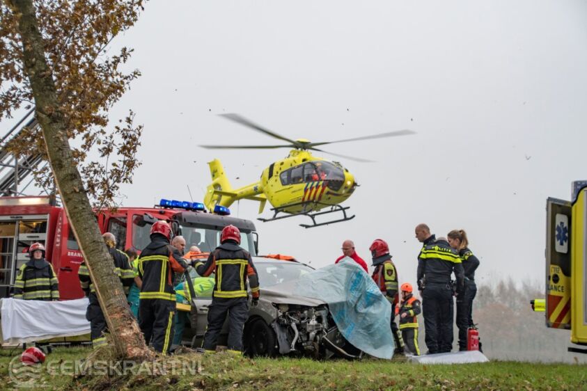 De vrouw, komende uit de richting van Slochteren, kwam door onbekende oorzaak kwam ze op de andere weghelft en raakte daar frontaal een boom. In samenspraak met het ambulancepersoneel en Mobiel Medische Team heeft Brandweer Siddeburen ruimte gemaakt in het voertuig zodat ze vrouw uit de auto gehaald kon worden. De vrouw is onder begeleiding van de MMT arts overgebracht naar het UMCG.