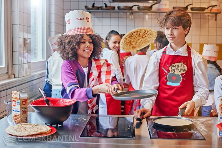 Dankzij het enorme enthousiasme van leerlingen, juffen, meesters, ouders en vrijwilligers blijft Nationale Pannenkoekdag ongekend populair. Tijdens deze 16de editie doen 1.510 scholen in Nederland mee. ‘Daarmee is de belangstelling voor dit jaarlijks terugkerend evenement weer net zo groot als voor corona,’ aldus Loes Tigelaar van Tefal. In heel Nederland gaan 75.000 leerlingen voor 79.000 ouderen zo’n 162.500 pannenkoeken bakken. Daarvoor krijgen ze 16.250 Koopmans Pannenkoekmixen, 3.250 Tefal pannenkoekpannen en 45.000 koksmutsen.