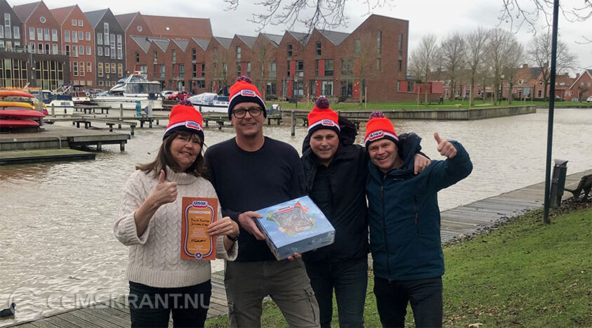 De organisatie reist het hele land door om winnaars te trakteren op een unieke erwtensoeptaart. Vandaag viel de beurt aan Nieuwjaarsduik Appingedam. Die verdiende de erwtensoeptaart vanwege de jarenlange inspanningen aan de organisatie van het evenement op 1 januari. Deze wordt voor de 9de keer georganiseerd met een sprong in het Damsterdiep. Alex: “De organisatie van een nieuwjaarsduik is ieder jaar toch weer een behoorlijke taak en wij vinden het fantastisch dat er mensen zijn die de nieuwjaarsduik door heel het land zo laten leven. De Nieuwjaarsduik staat bij initiatiefrijke mensen en we waarderen het enorm dat Janneke, Betto en Hero met hun comité zich daarvoor al jaren inspannen. Nog niet eerder heeft iemand in een week tijd de organisatie van de Nieuwjaarsduik op zich genomen en met zoveel enthousiasme en voortvarendheid alles wat ervoor nodig is geregeld en mede enthousiastelingen opgetrommeld. Dat waarderen wij enorm en verdient wat ons betreft een erwtensoeptaart.”