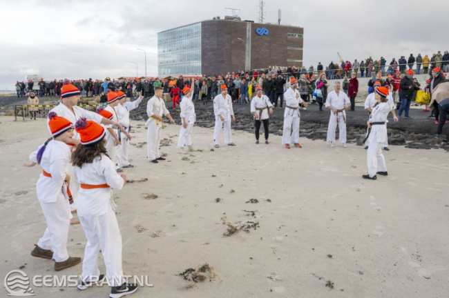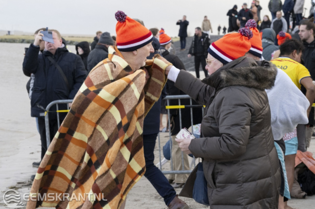 Delfzijl – Het nieuwe jaar werd op traditionele wijze ingeluid door een aanzienlijke menigte die deelnam aan de Nieuwjaarsduik in de zee bij Delfzijl. Dankzij het gunstige tijdstip van de duik waren er dit jaar opvallend veel mensen aanwezig. Om 15:15 uur gaf wethouder Jan Menninga het startschot voor de officiële Unox-nieuwjaarsduik, waarna meer dan 300 enthousiaste deelnemers zich in de Eems stortten.