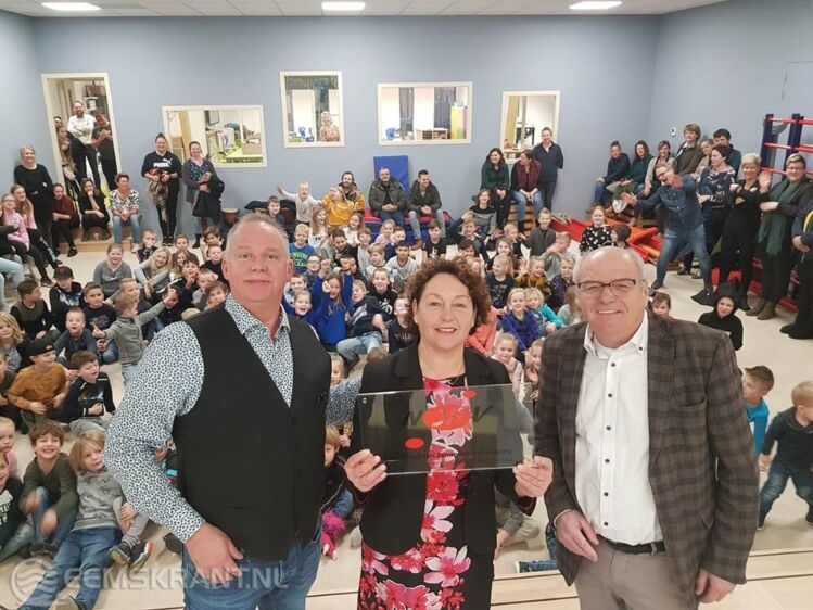 Middelstum – Sinds 10 januari is OBS De Wilster uit Middelstum een Jenaplanschool. Uit handen van Freek Velthausz en Hubert Winters van het JAS (Jenaplan Advies & Scholing) kreeg directrice Els Stoepker het officiële ‘Jenaplanbordje’ overhandigd.
