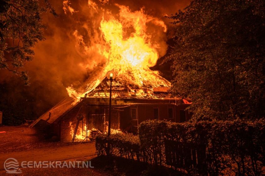 Inmiddels waren al meerdere brandweerkorpsen uit de regio ter plaatse. De brandweer werd aanvankelijk opgeroepen voor een containerbrand. Maar ter plaatse troffen de brandweerlieden een vlammenzee aan. De boerderij bleek na drie uur blussen niet meer te redden. Ook een schaftkeet en een bestelauto die bij het pand stonden brandden volledig uit.