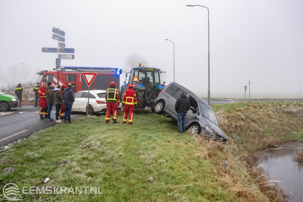 Farmsum – Op zondagochtend heeft zich op de Warvenweg (N992) een eenzijdig ongeval voorgedaan. Een automobilist raakte op een rotonde van de weg en kwam met zijn voertuig boven een sloot tot stilstand.