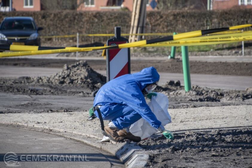 De politie heeft het gebied waar het materiaal is aangetroffen, met linten afgezet. Dit betreft ook een deel van de rotonde. Verkeersregelaars zijn ingezet om het verkeer in goede banen te leiden.