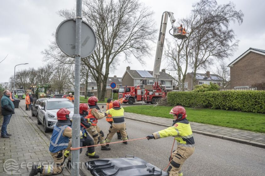 Aan de Strijker in Delfzijl dreigde een boom op een woning te vallen. De brandweer heeft de boom samen met de gemeente verwijderd. De straat was tijdens de werkzaamheden gestremd.