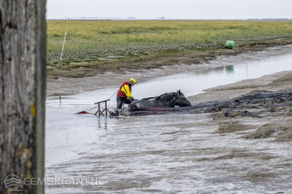 Noordpolderzijl – Donderdagmiddag kwam een paard in de vaargeul van de getijdenhaven van Noordpolderzijl bij Usquert vast te zitten in het slik. Het dier kon zich niet meer bewegen en raakte snel in de problemen. De brandweer van Uithuizen was als eerste ter plaatse en probeerde het paard uit het slik te bevrijden, maar hun inspanningen waren tevergeefs.