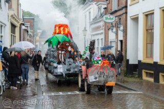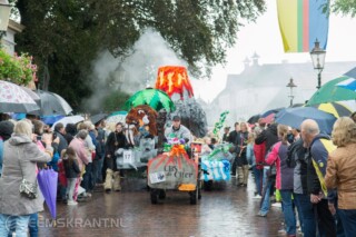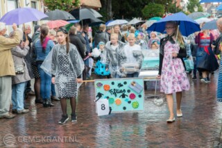 Appingedam – De 119e editie van het Papiercorso in Appingedam had zaterdagmiddag flink te lijden onder de aanhoudende regen. Toch stonden er in de straten langs de route door het centrum van Appingedam veel toeschouwers.