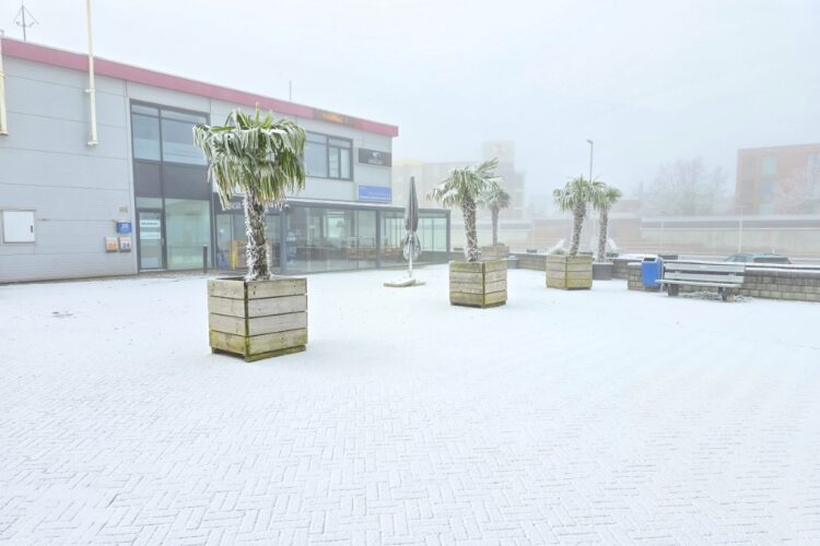 Delfzijl – Zondagochtend was het de haven van Delfzijl plaatselijke witte. Dit ontstond door een combinatie van mist en vorst, waarbij de vochtige lucht zich als een dunne witte laag afzette op oppervlakken.