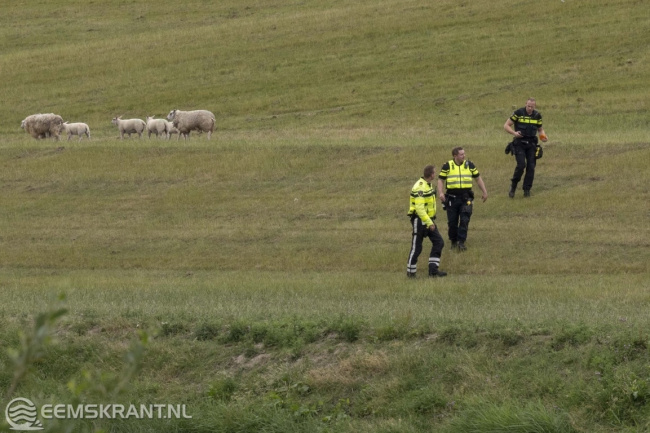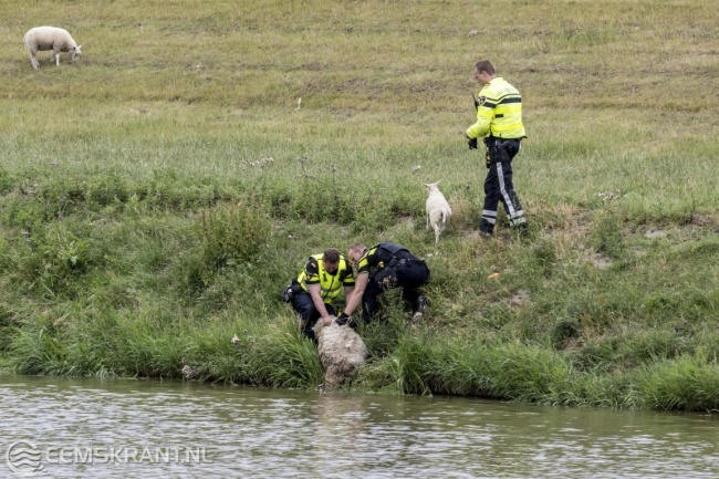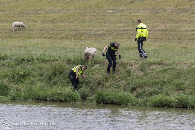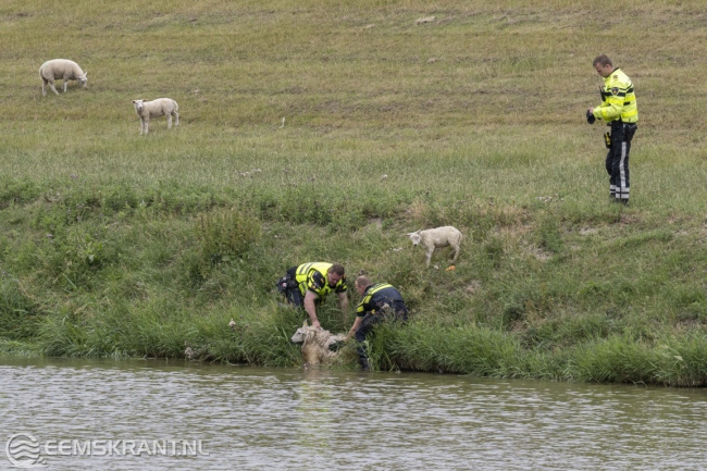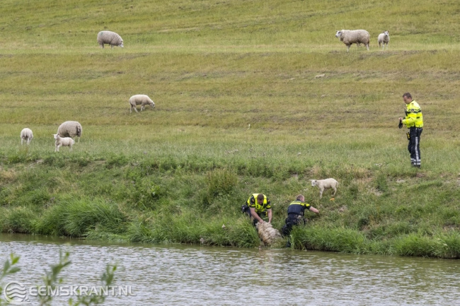 Delfzijl – Maandagavond werd de brandweer van Delfzijl opgeroepen voor een melding van een schaap te water aan de Kustweg in Delfzijl. Echter, voordat de brandweerlieden ter plaatse waren, had de politieagenten van basisteam Ommelanden Noord al met succes het schaap uit de vijver gered. Dit gebeurde onder toeziend oog van een lammetje. De inzet van de brandweer was niet meer nodig, waardoor zij onverrichter zake terug konden keren naar de kazerne.
