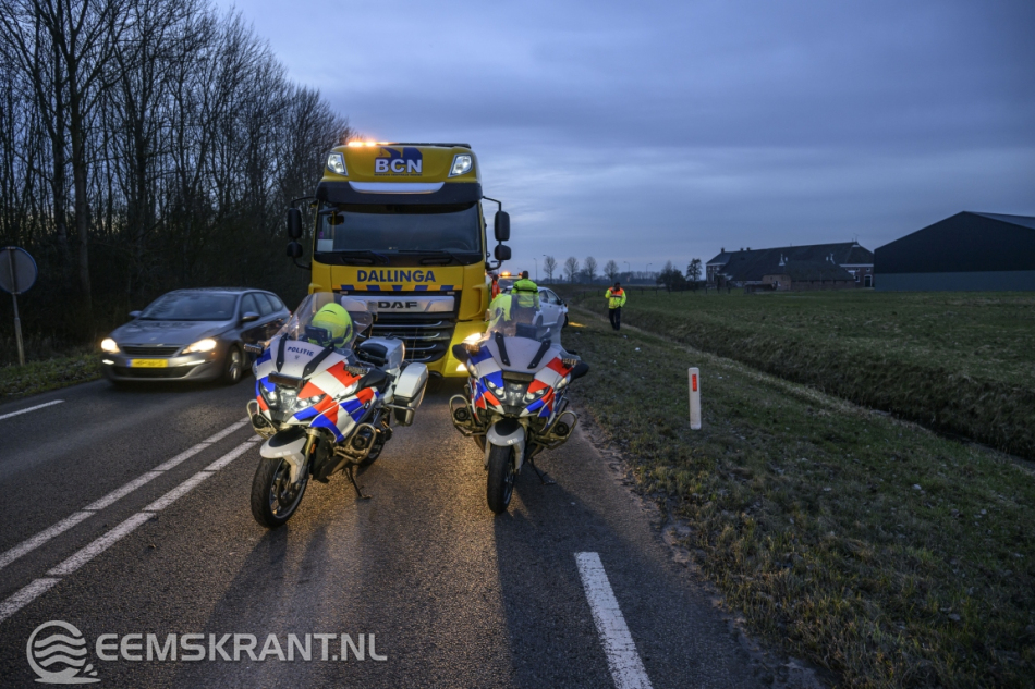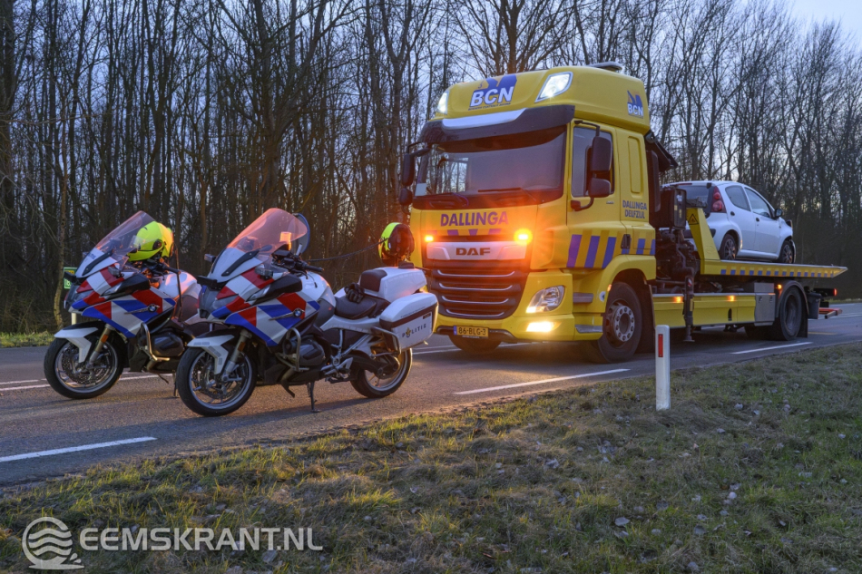 De rijbaan in de richting van Loppersum werd gedeeltelijk afgesloten. De politie regelde het verkeer totdat een berger het beschadigde voertuig had afgesleept.