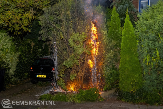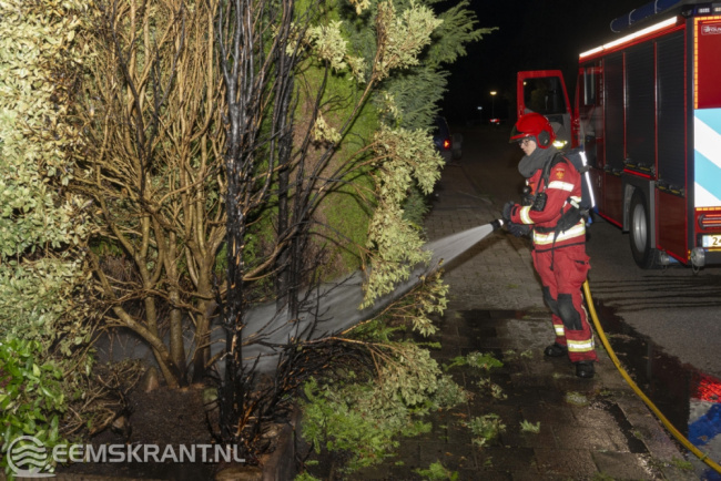 De brandweer was nog maar net terug op de kazerne in Delfzijl toen ze opnieuw werden opgeroepen voor een brand in een boom/grote conifeer aan de Koningsplaat. Deze boom stond naast een flat van twee hoog en de brand was snel onder controle. Terwijl de brandweer op de Koningsplaat bezig was, volgde alweer de volgende melding. Enkele tientallen meters verderop, aan de Huibertplaat, stond ook een coniferenhaag in brand. De brandweer heeft de werkzaamheden op de Koningsplaat snel afgerond en is met spoed doorgereden naar de Huibertplaat. Deze brand kon ook snel met een straal hogedruk worden geblust.