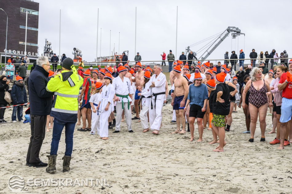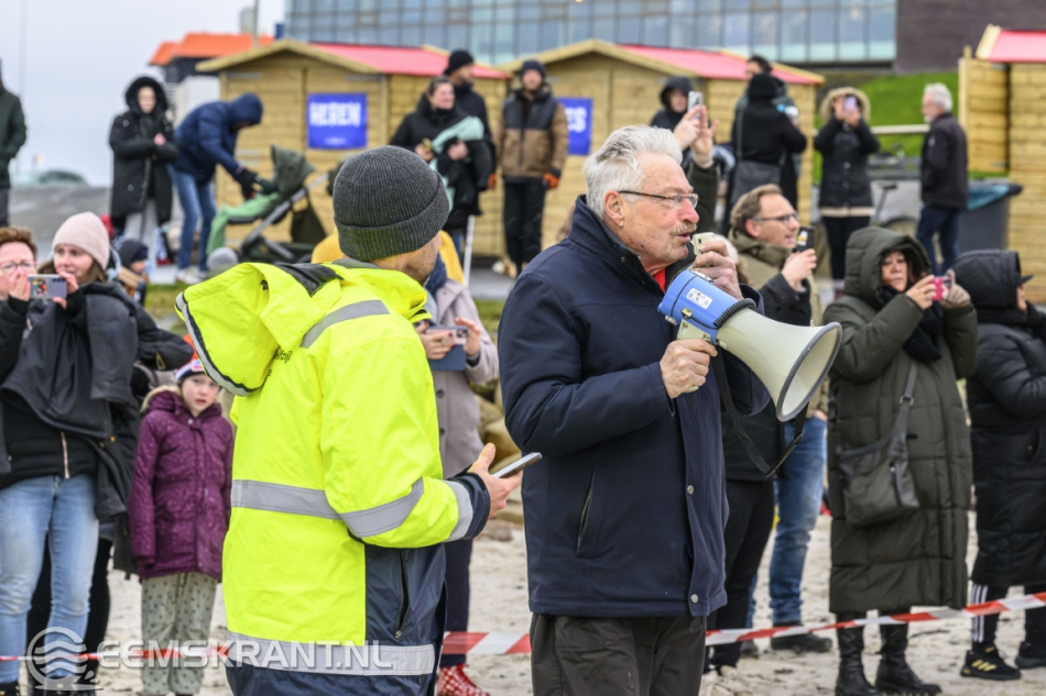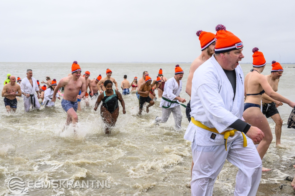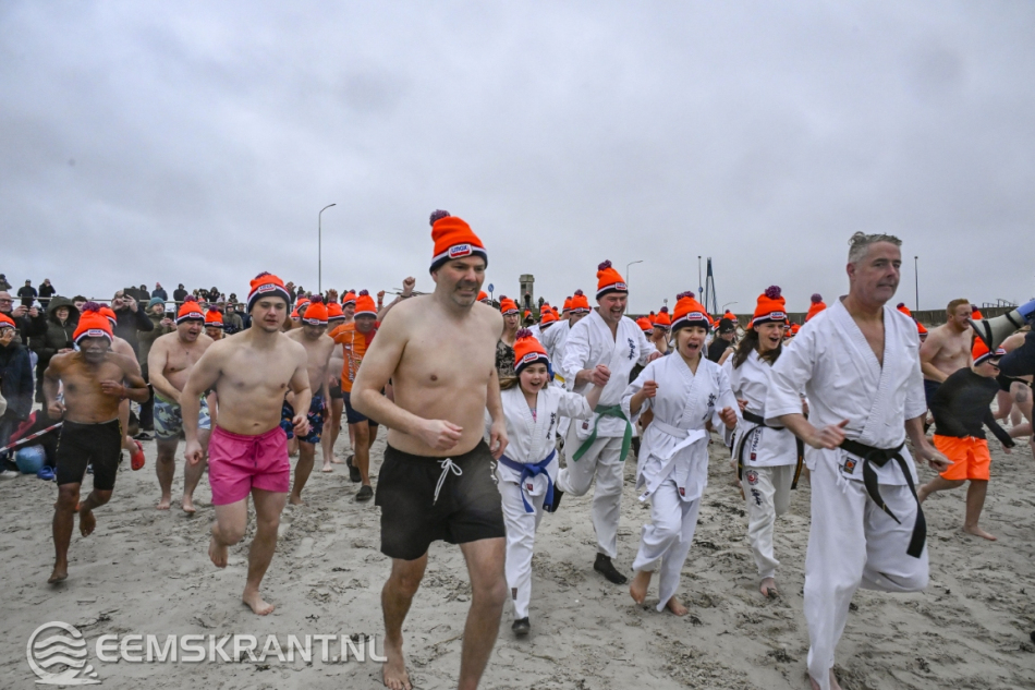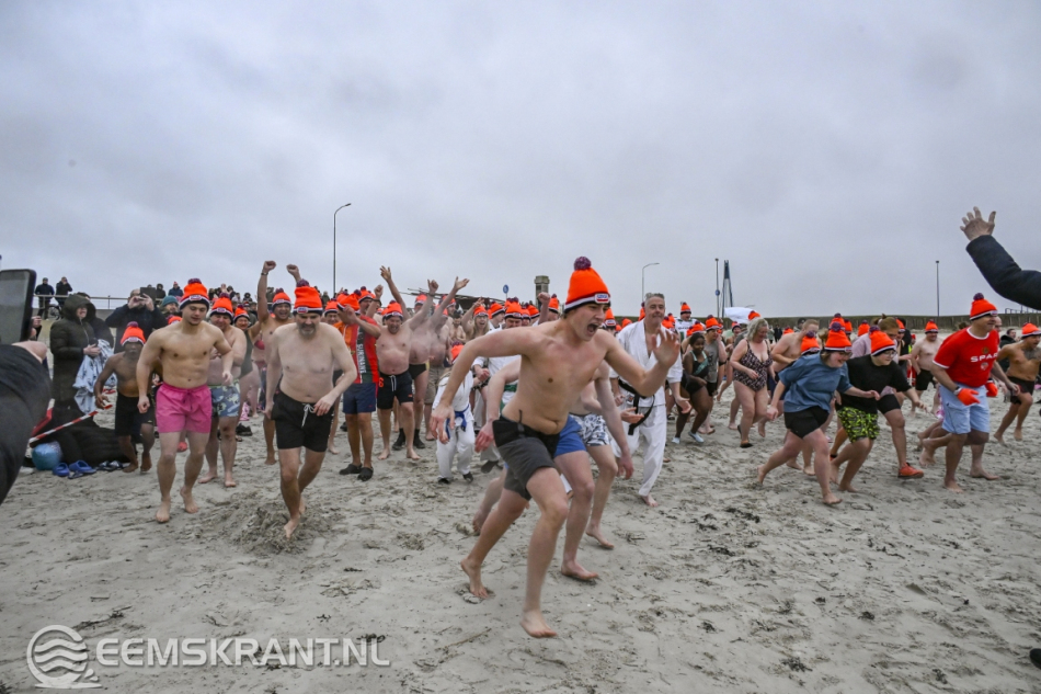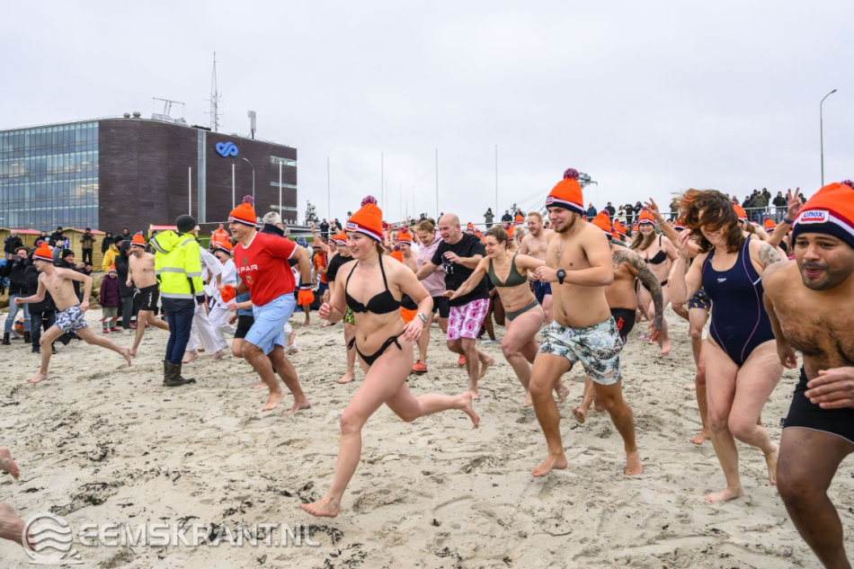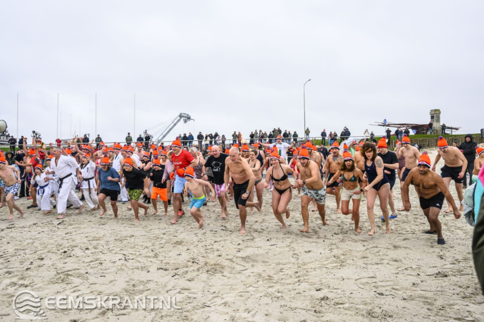Wethouder Jan Menninga gaf om 10.00 uur het startschot, waarna de deelnemers het water in renden. Oorspronkelijk stond de duik gepland voor 11.00 uur, maar vanwege het afgaande tij en de weersverwachting werd besloten de start een uur te vervroegen.