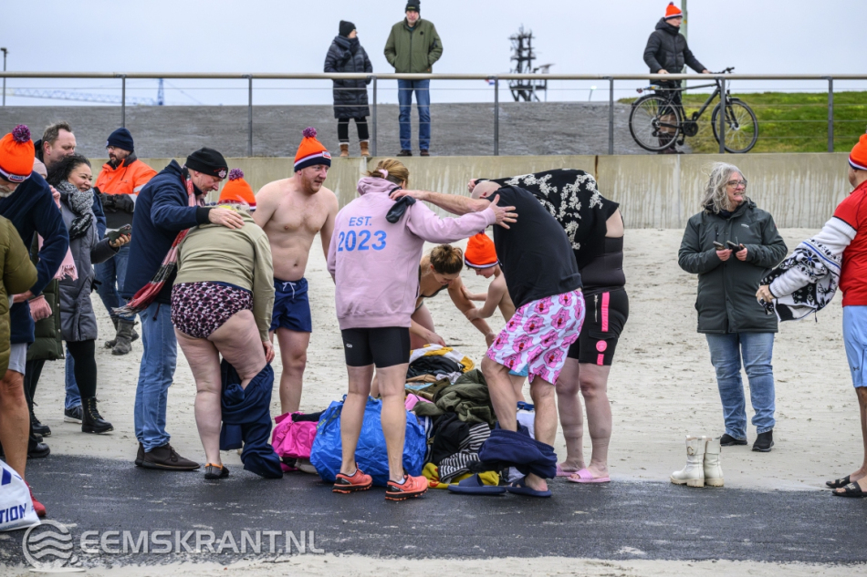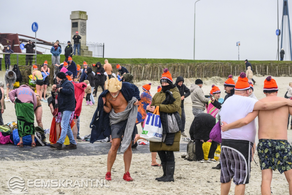 De Damster Reddingsbrigade hield toezicht en zorgde ervoor dat de deelnemers veilig bleven en niet te ver de zee in gingen. Na slechts enkele minuten zat de duik er alweer op en stond iedereen snel weer op het droge. Daar werd warme kleding aangetrokken en kon men zich opwarmen met een kop snert, waarmee de nieuwjaarsduik op gezellige wijze werd afgesloten.