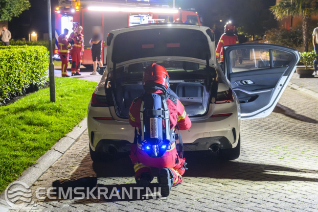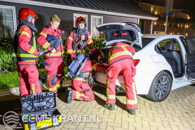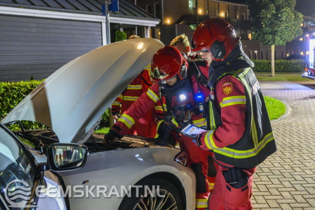 Bewoners roken een vreemde geur en ontdekten rookontwikkeling in hun BMW. Ze schakelden direct de lader uit en verplaatsten de auto naar een veilige plek. De brandweer wist de gloeiende accu uit de auto te verwijderen en voorkwam daarmee dat de wagen mogelijk in brand vloog.