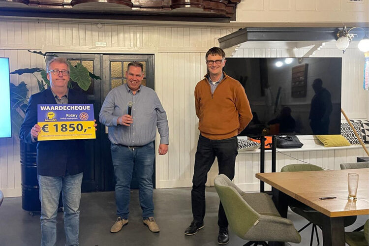 Delfzijl – Rotary Appingedam Delfzijl heeft een symbolische cheque ter waarde van €1.850 overhandigd aan Prof. Dr. Hans van Koningsbrugge, ten behoeve van Stichting De LeeuwKyiv. Deze stichting zet zich in voor de levering en coördinatie van humanitaire hulpgoederen aan Oekraïne. De donatie is afkomstig uit een eerdere inzamelingsactie van de Rotaryclub.