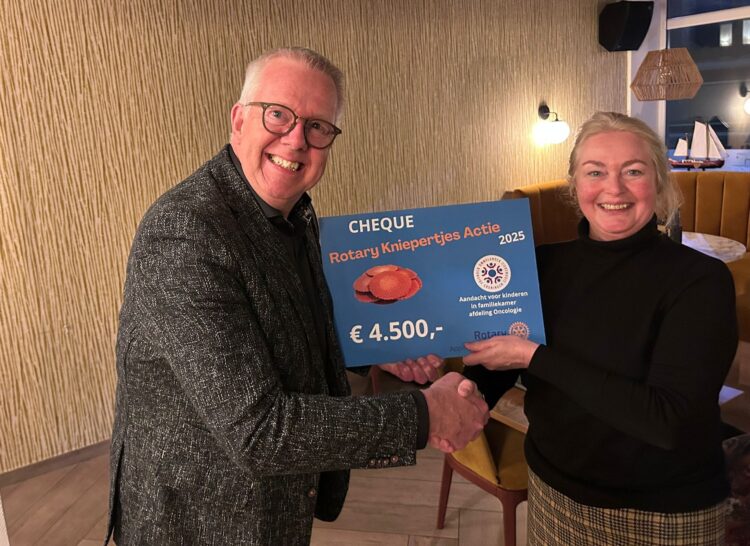 Delfzijl – De Kniepertjes Actie georganiseerd door Rotary Appingedam Delfzijl heeft € 4.500 opgebracht. Met dit bedrag wordt via de Vrienden van het OZG een bijdrage geleverd om in de familiekamer meer aandacht te geven aan de kinderen van patiënten van de afdeling oncologie. De kniepertjes werden door de leden zelf gebakken en in december 2025 verkocht op drie kerstmarkten in de regio. Op de eerste clubavond in het nieuwe jaar werd de symbolische cheque uitgereikt aan Sieneke Bolken, voorzitter van Stichting Vrienden van het OZG.