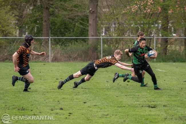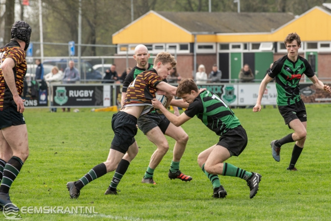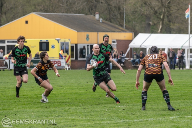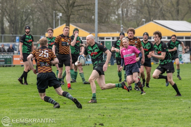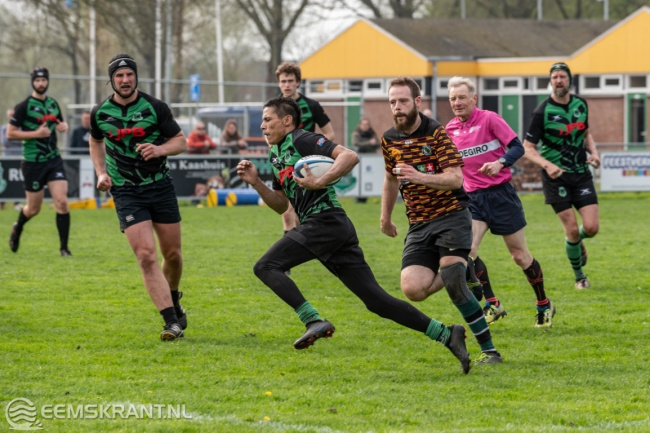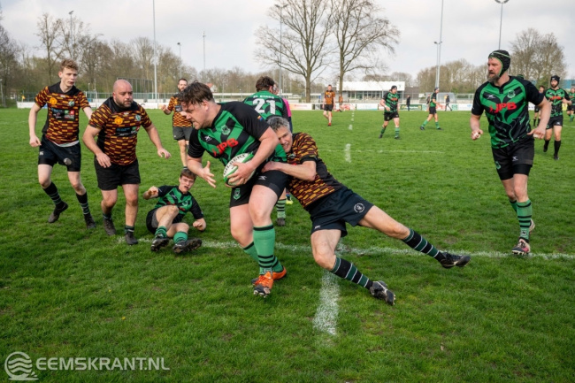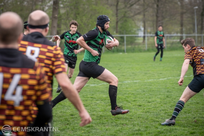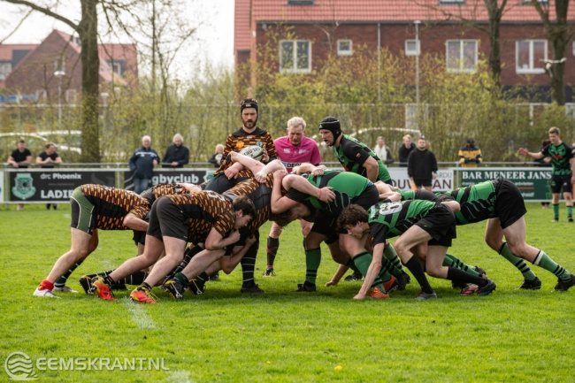 Het was dan ook in het open spel dat Phoenix de eerste helft al het verschil zou maken. Snelle mannen als Christiaan Buist en Jaimy Portier zorgden voor de eerste tries. De conversies van beide tries werden ook keurig door Stan Doornbos verzilverd. De opdracht van deze middag voor de spelers van Phoenix was duidelijk doorgedrongen want Phoenix bleef de hele eerste helft vol op de aanval spelen. Met directe looplijnen werd er ingebeukt op de verdediging van de gasten uit het midden van het land. Een goede fase van Phoenix vlak voor rust had tot resultaat dat de krachtsverschil ook op het scorebord groter werd. Bij het rustsignaal leidde de thuisploeg dan ook met een keurige 35 – 0 voorsprong.