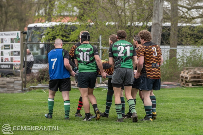 De tweede helft leek Phoenix wat gas terug te nemen. Het speltempo daalde aanzienlijk en bij beide teams leek de intense eerste helft parten te spelen. Het spel lag veelvuldig stil door allerlei oorzaken. Phoenix werd lange tijd ver weg gedrukt en moest alle zeilen bijzetten om grotere schade te voorkomen. Wonderwel lukte dit door goed samenwerken in de verdediging. Dat Phoenix slagvaardiger was deze middag bleek nogmaals richting het einde van de wedstrijd. Phoenix schakelde snel om nadat men het balbezit overgenomen had. Sterk loopwerk vanuit de voorwaartsen werd goed afgemaakt door de snelle mannen in de lijn en daarmee was de wedstrijd ook echt voorbij. De keurige 42 – 0 overwinning was ruim voldoende om het kampioenschap binnen te halen.