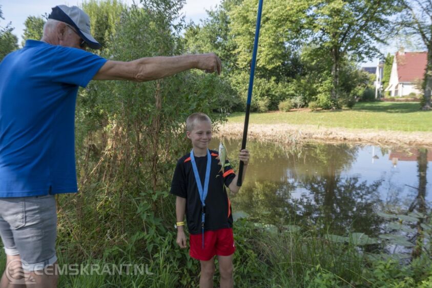 De deelnemende kinderen werd geleerd hoe ze zelf vistuigje maakten, ze leerden het behandelen en juist onthaken van een gevangen vis. En er werd veel vis gevangen door de deelnemers, soms lag de dobber er nog maar net in het water en zat er alweer een vis aan de haak.
