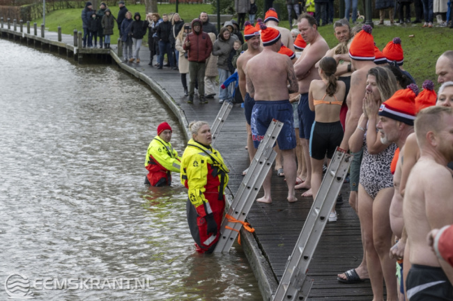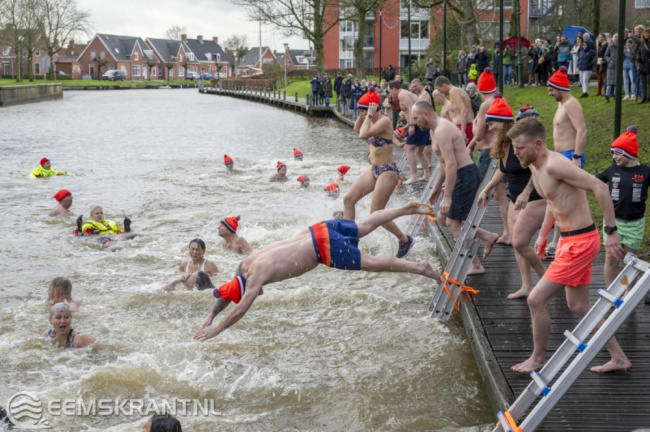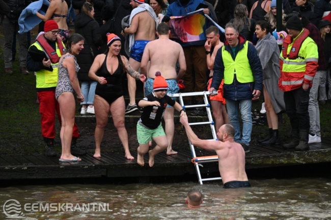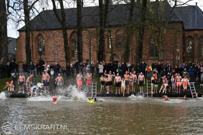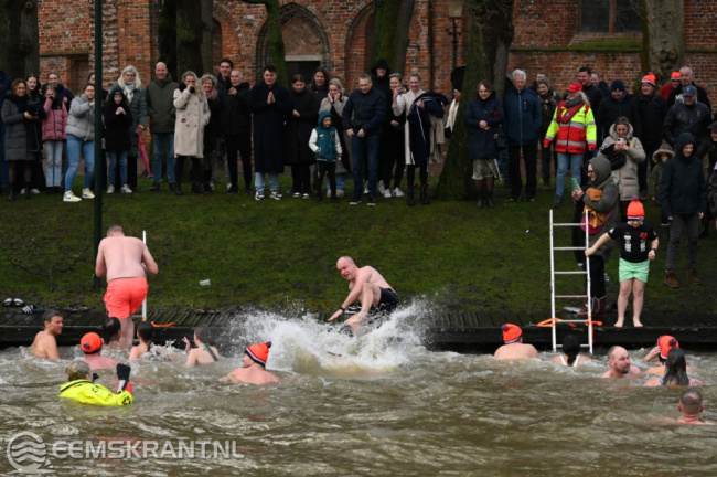 Appingedam – Ruim 30 mensen hebben maandagmiddag meegedaan aan de Unox Nieuwjaarsduik Koud Kunstje in het Nieuwe Diep achter de Nicolaïkerk in Appingedam. Echt aangenaam was het weer niet met een buitentempratuur van 8 graden een gure wind en regen. De deelnemers konden zich inschrijven en omkleden in café De Doofpot.