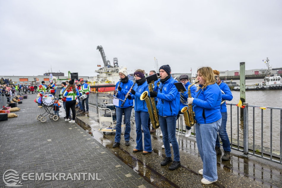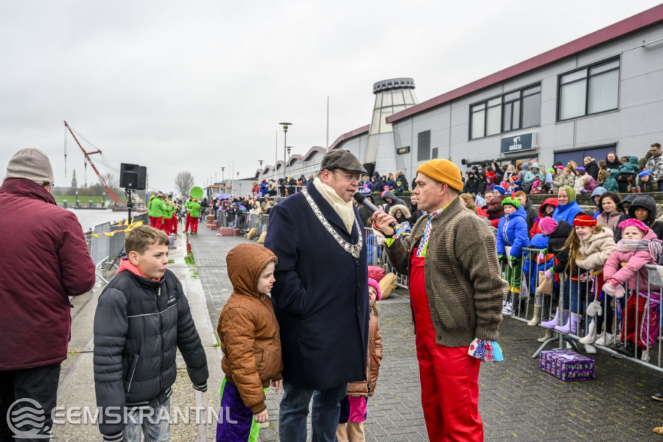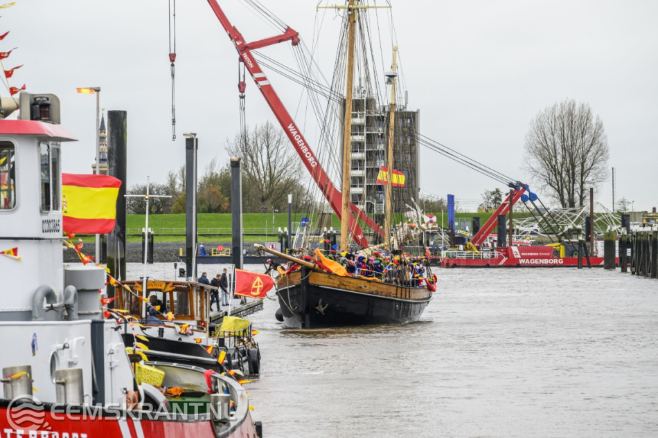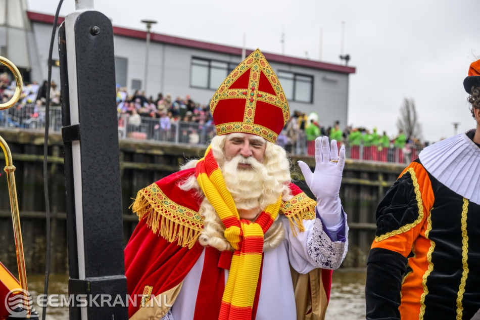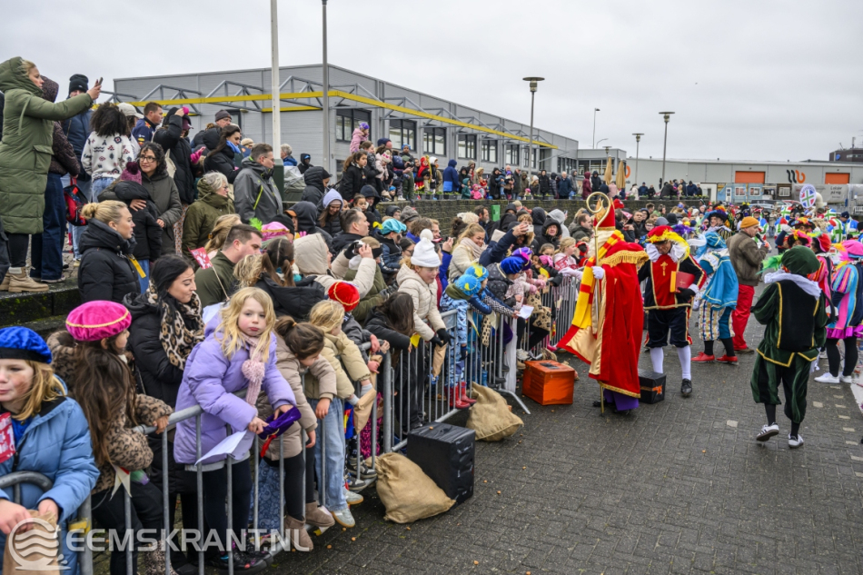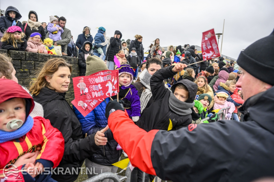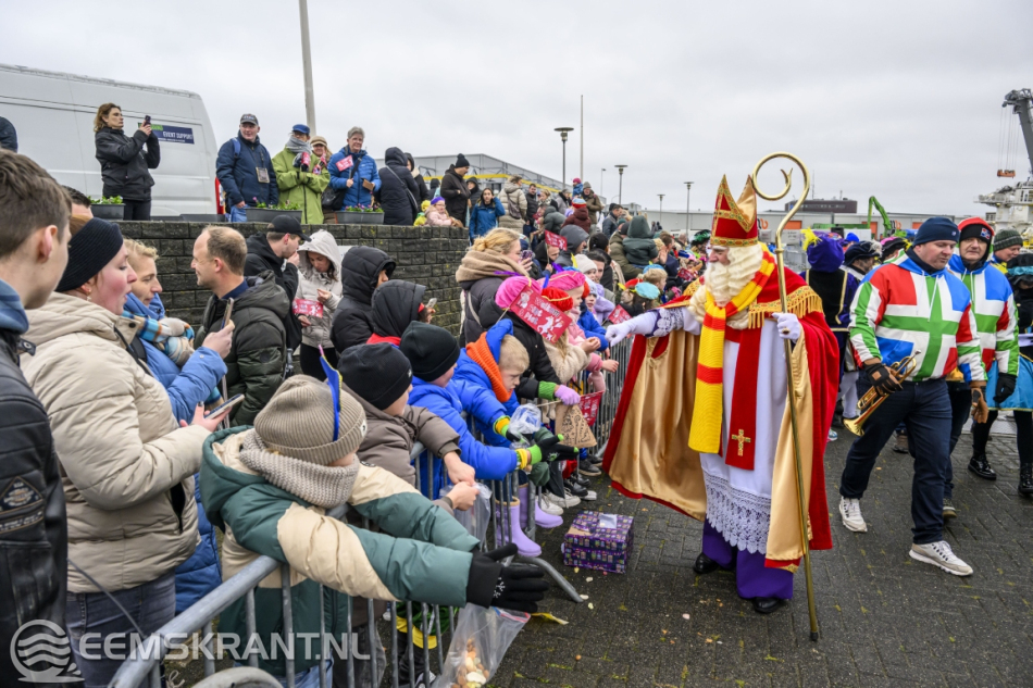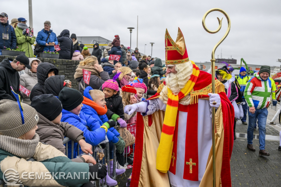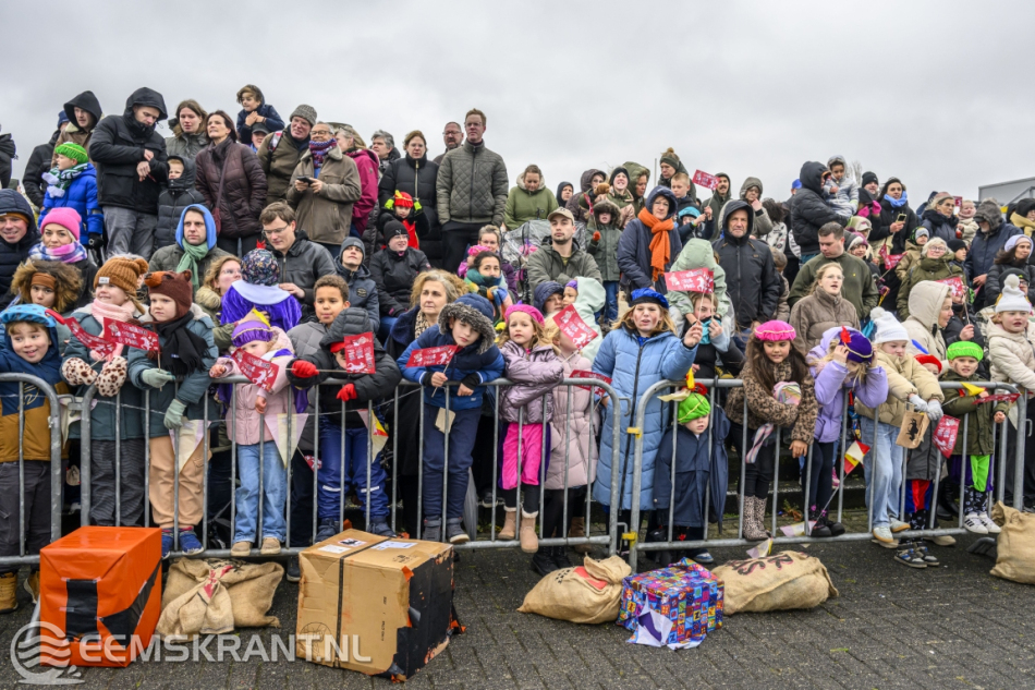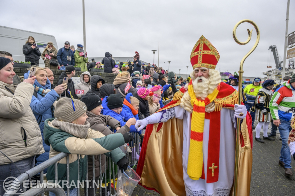 Delfzijl – Onder grote belangstelling is Sinterklaas zaterdag aangekomen in de haven van Delfzijl. Honderden enthousiaste kinderen, gewapend met tekeningen, vlaggetjes en verlanglijstjes, stonden de goedheiligman op te wachten. Ondanks het natte en koude weer was de sfeer warm en feestelijk.