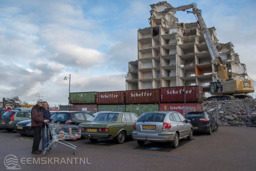 De sloop van het 80 appartementen tellende flatgebouw verloopt minder snel dan eerder werd verwacht. Bij aanvang van de sloop werd er vanuit gegaan dat de flat binnen drie week uit het straatbeeld van Delfzijl zou zijn verdwenen. Nu bijna zes week later heeft de 70 tons sloopkraan net de laatste woning op de bovenste etage gesloopt.