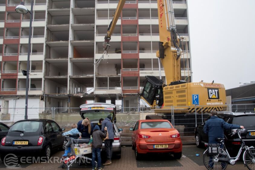 Delfzijl – Vanmiddag is een 70 tons sloopkraan begonnen met het afbreken van de Vennenflat. Als eerste wordt de buitenkant van de flat ontmanteld waarna er kan worden begonnen aan de kern van de flat. Het lijkt er op dat dit keer niets de sloop meer in de weg staat. De sloop werd namelijk al een aantal keren uitgesteld in verband met onderzoek naar vleermuizen en het verwijderen van asbest in het gebouw.