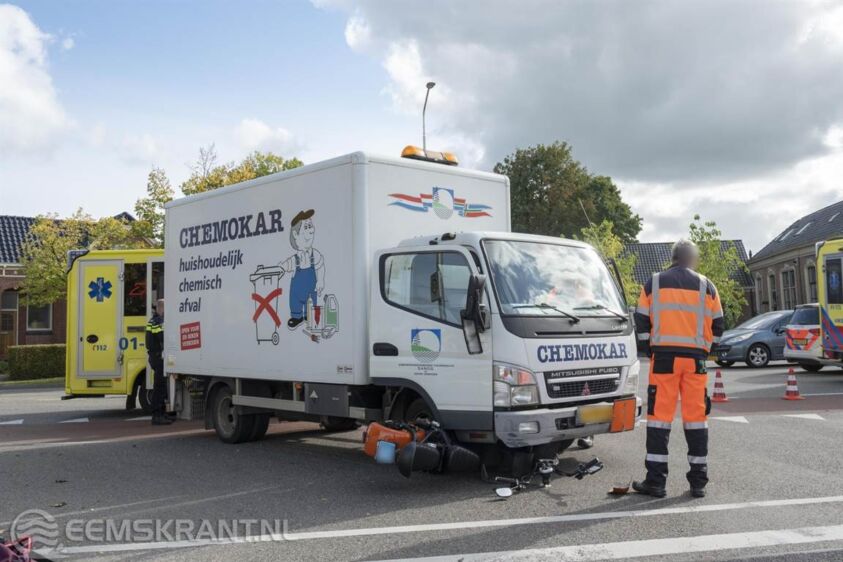 Appingedam – Op de kruising van de Woldweg met de Wijkstraat heeft woensdagmiddag een aanrijding tussen een elektrische scooter en een kleine vrachtwagen plaatsgevonden. De bestuurder van de vrachtwagen zag de elektrische scooter tijdens het afslaan over het hoofd.
