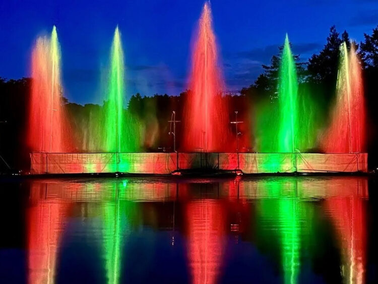 Uit honderden sproeiers wordt water met een druk van 4 tot 10 bar in verschillende patronen de lucht in gespoten, tot wel 30 meter hoog. De waterstralen draaien, bewegen op de maat van de muziek en worden verlicht in een veelkleurig schouwspel. Tijdens de tweede voorstelling wordt de show uitgebreid met een lasereffect, waarbij een watergordijn ontstaat dat dient als scherm voor spectaculaire projecties.