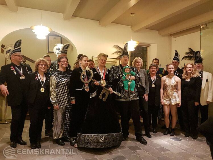 Appingedam – Carnavalsvereniging de Damster Narren heeft vrijdag uit handen van wethouder Annelies Usmany de stadssleutel ontvangen. De sleutel werd overhandig aan Stadsprins Roelf 1e Stadsprinses Janneke 1e in het bijzijn van hofdame Dees en de Raad van 11. Appingedam is hier mee weer voor even omgedoopt tot Narrenstad.