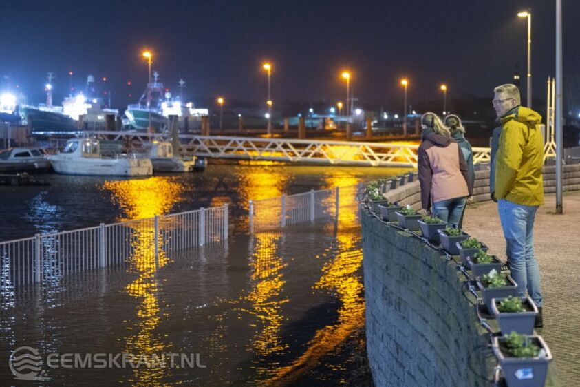 Delfzijl – Storm Pia, die vandaag over het land trekt, heeft geleid tot een opstuwing van water in de Eems-Dollard. Rond 19:00 uur vanavond bereikte het water het hoogtepunt, waarbij de kades in de haven gedeeltelijk onder water liepen. De waterstand bereikte een niveau van 3.38 meter boven NAP, terwijl een voorspelling aangaf dat het waterpeil zou stijgen naar 3.50 meter boven NAP.