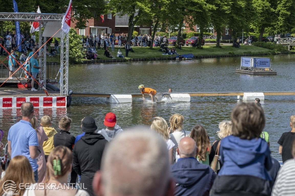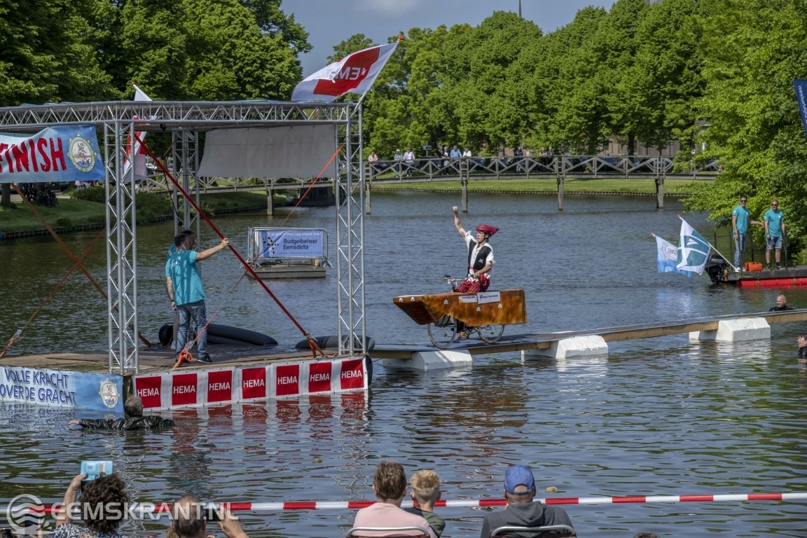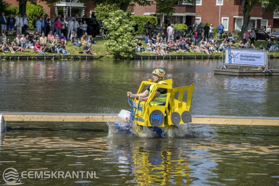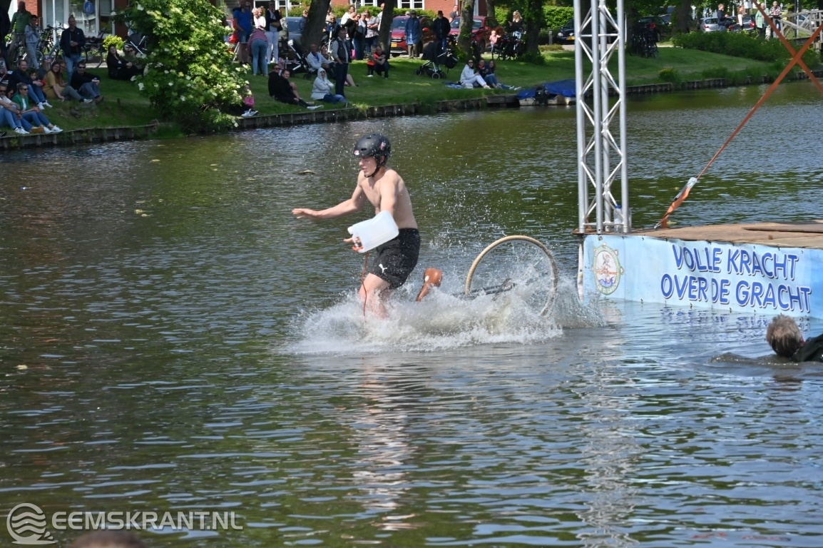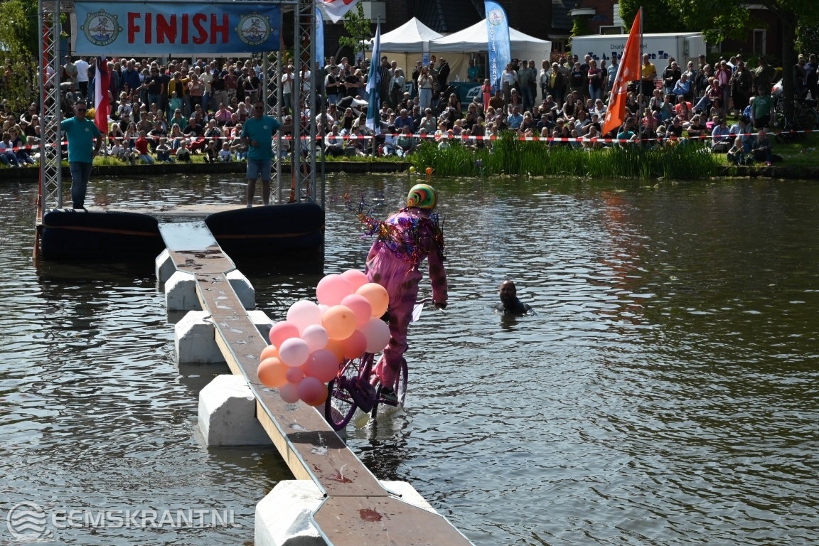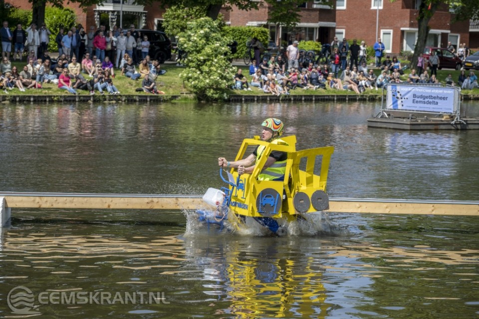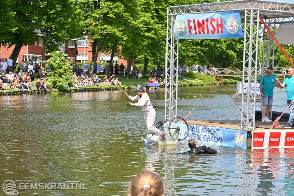 Delfzijl – Stichting ‘Volle kracht over de gracht’ organiseerde afgelopen zaterdagmiddag voor de vierde keer het evenement ‘Volle kracht over de gracht’. Dit jaar kon de organisatie rekenen op een groot aantal fanatieke deelnemers, ruim 65 gingen van de smalle baan aan de gracht aan de M. van Coehoornsingel en de Buitensingel. Er werd gestreden om de prijs voor de snelste man/vrouw, de originaliteitsprijs en de pechprijs. Bedrijven deden mee in teamverband, zijn konden een wisselbokaal winnen.