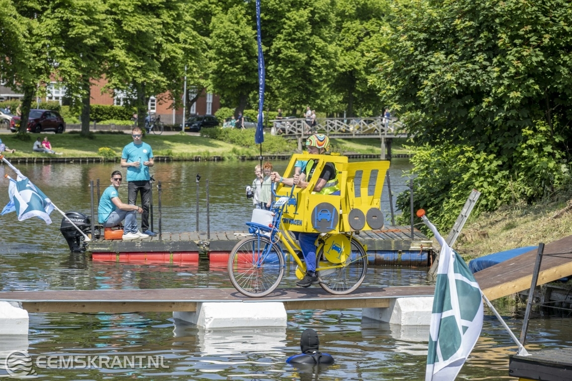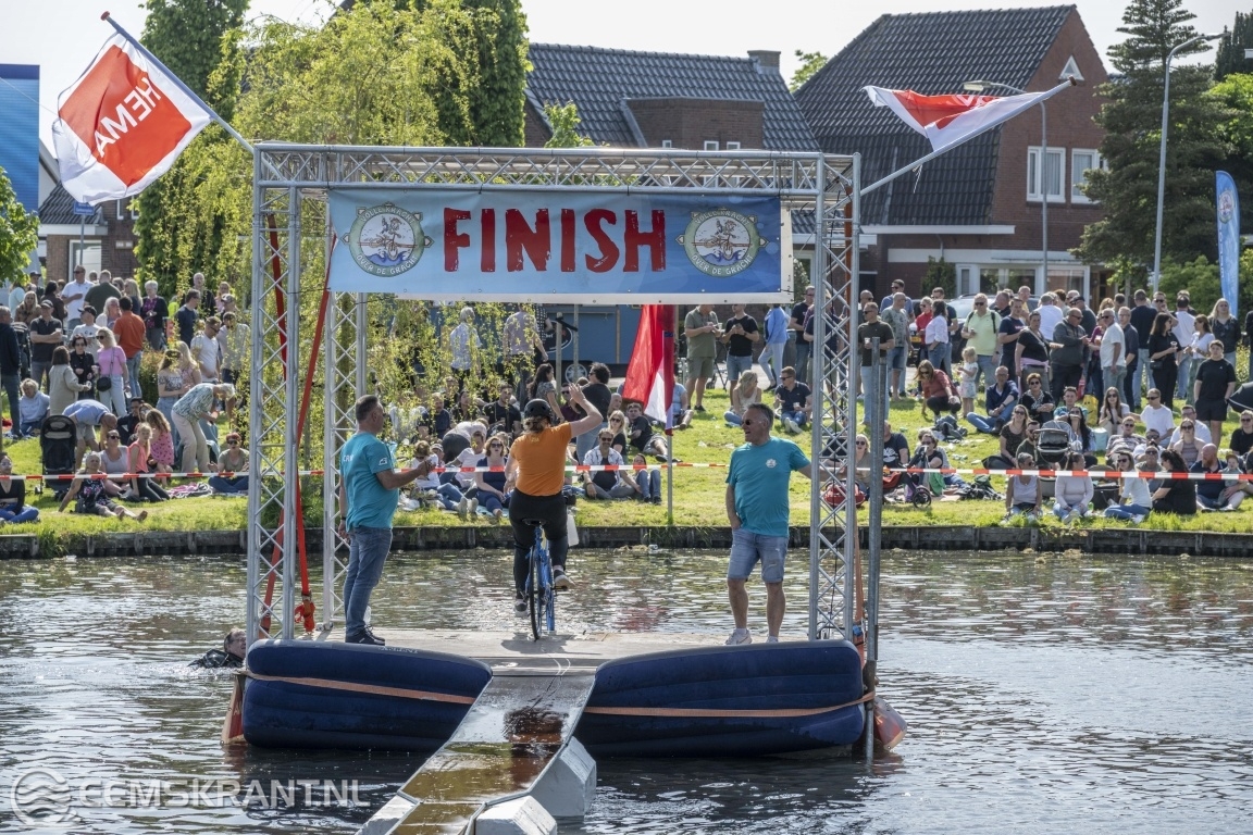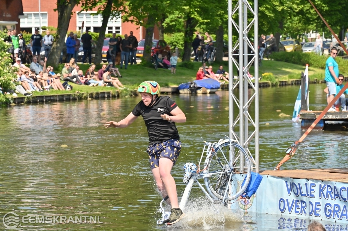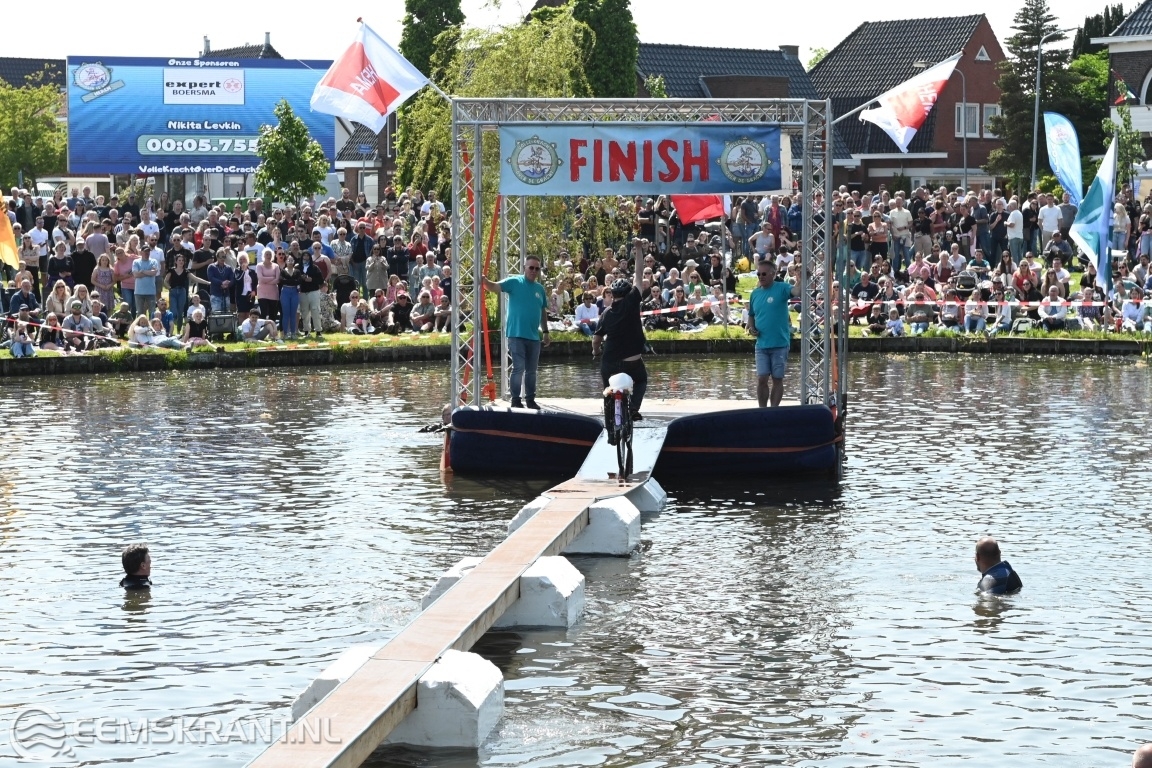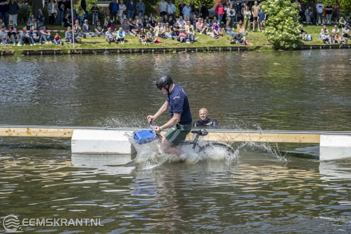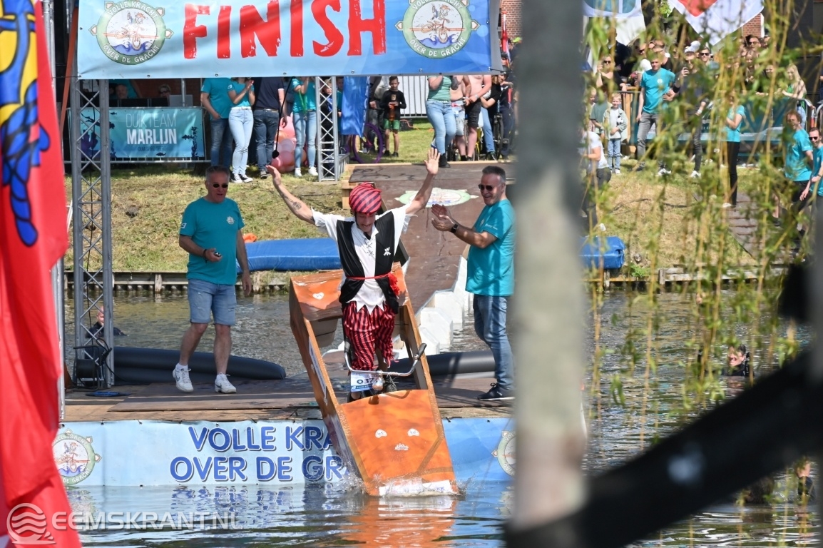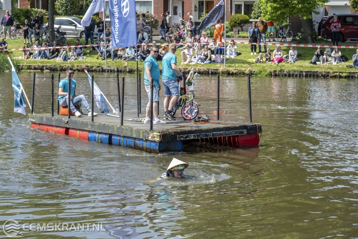 Delfzijl – Stichting ‘Volle kracht over de gracht’ organiseerde afgelopen zaterdagmiddag voor de vierde keer het evenement ‘Volle kracht over de gracht’. Dit jaar kon de organisatie rekenen op een groot aantal fanatieke deelnemers, ruim 65 gingen van de smalle baan aan de gracht aan de M. van Coehoornsingel en de Buitensingel. Er werd gestreden om de prijs voor de snelste man/vrouw, de originaliteitsprijs en de pechprijs. Bedrijven deden mee in teamverband, zijn konden een wisselbokaal winnen.