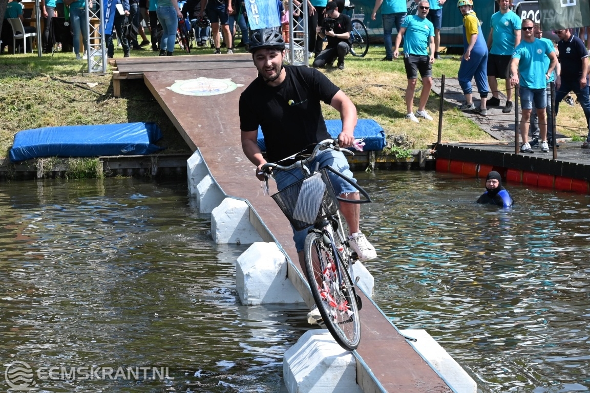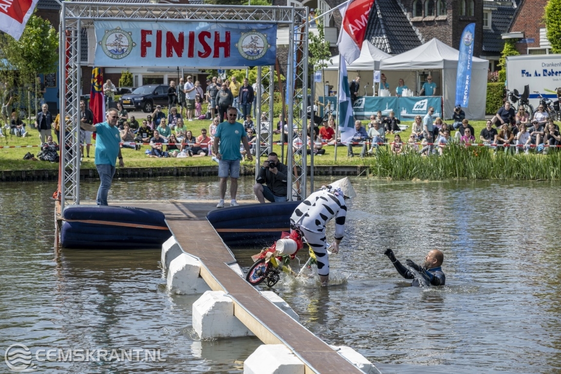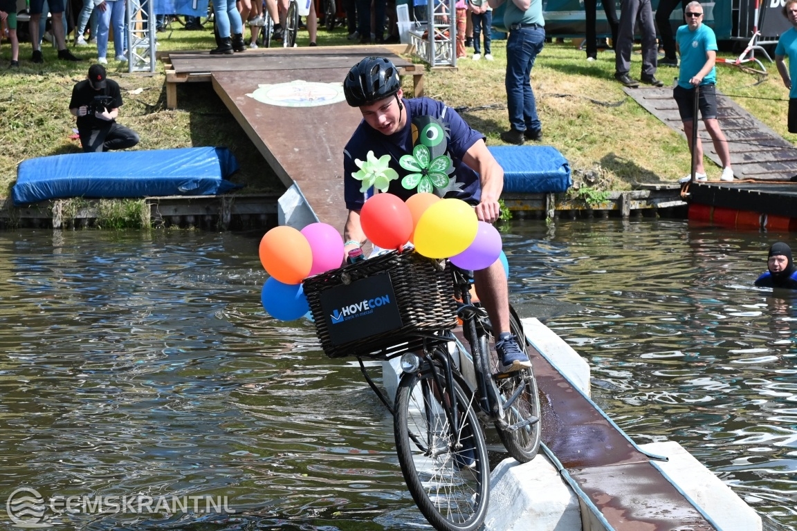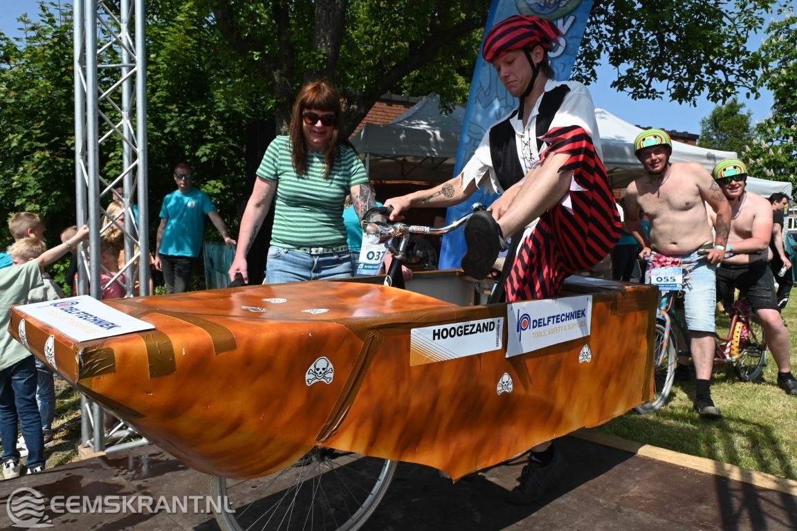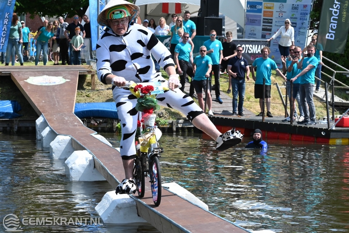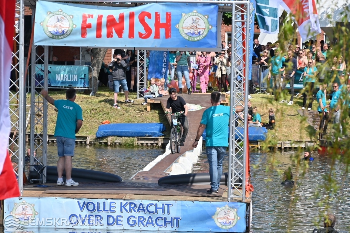 Delfzijl – Stichting ‘Volle kracht over de gracht’ organiseerde afgelopen zaterdagmiddag voor de vierde keer het evenement ‘Volle kracht over de gracht’. Dit jaar kon de organisatie rekenen op een groot aantal fanatieke deelnemers, ruim 65 gingen van de smalle baan aan de gracht aan de M. van Coehoornsingel en de Buitensingel. Er werd gestreden om de prijs voor de snelste man/vrouw, de originaliteitsprijs en de pechprijs. Bedrijven deden mee in teamverband, zijn konden een wisselbokaal winnen.