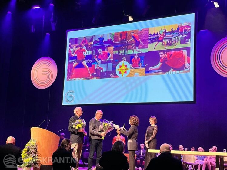 Middelstum – Op maandagavond 12 december zijn in Martiniplaza te Groningen de Groninger sportprijzen 2022 aan meerdere categorieën sporters uitgereikt. In de categorie breedtesport is tafeltennisvereniging Midstars uit Middelstum de winnaar geworden van deze eervolle onderscheiding. De prijs, een door kunstenares Natasja Bennink ontworpen bronzen beeld, is namens de club in ontvangst genomen door Jan Tammenga en Piet Bergsma.