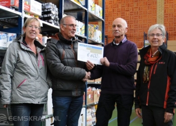 Cheque van de Damster Odd Fellows voor de voedselbank