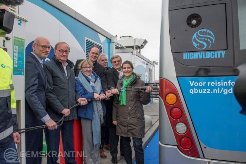 Delfzijl – Vandaag (donderdag 22 februari ) is er weer een feestelijke en belangrijke stap gezet naar schoon en emissieloos rijden: het tankstation voor waterstof in Delfzijl is geopend. Samen met de twee bussen die de komende jaren rijden in Groningen en Drenthe is dit de opmaat naar de vergroening van de economie in Noord-Nederland. Gedeputeerde Fleur Gräper – Van Koolwijk, onder andere verantwoordelijk voor verkeer en vervoer in de provincie Groningen en voorzitter van het OV-Bureau Groningen Drenthe, verrichtte de opening samen met Qbuzz, AkzoNobel Specialty Chemicals, Groningen Seaports en PitPoint. De proef met de bussen duurt 5 jaar en wordt ondersteund door het Ministerie van Infrastructuur en Waterstaat en het Europese HighVLOCity programma.