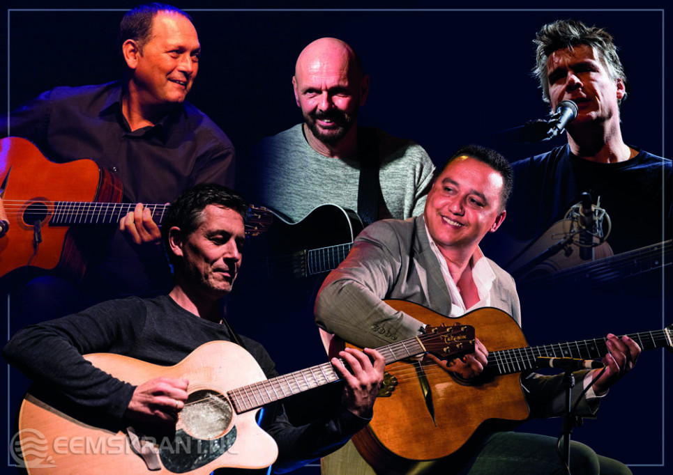 Delfzijl – In 2024 bestaan de Five Great Guitars 25 jaar. Sinds 1999 trekken oprichter en artistiek leider Jan Kuiper en gitaarbassist Digmon Roovers door het land met hun supergitaargroep. Een reis door de wereld van de moderne gitaar, een mix van blues, rock, funk, gypsy, pop, jazz en wereldmuziek, met swingende grooves en ritmes uit alle werelddelen en improvisatie als verbindende factor. Om dat te vieren komt het kwintet met een nieuw programma, met muziek van onder meer J.J. Cale, Larry Carlton, Eric Clapton, Jeff Beck, Stevie Wonder, Fleetwood Mac, Santana, Django Reinhardt en The Allman Brothers Band.
