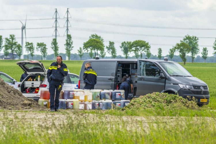 De vondst wijst mogelijk op een illegale dumping van afval afkomstig uit een drugslab, een probleem dat de laatste jaren ook in Noord-Nederland steeds vaker voorkomt.