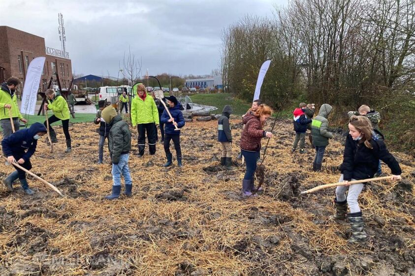 Ten Boer – Basisschoolleerlingen in Ten Boer plantten op 30 november, samen met IVN Natuureducatie, een Tiny Forest op het schoolplein van het nieuwe Kindcentrum Ten Boer. OBS De Huifkar, CBS De Fontein en kinderopvang Kids2b kunnen over een tijdje dus allemaal gebruikmaken van dit minibos met buitenlokaal. Een Tiny Forest is een groene oase ter grootte van een tennisbaan: 600 boompjes (30 soorten) op 200 m2. Waar bomen groeien, insecten zoemen en egels kunnen schuilen. Een plek waar kinderen leren over de natuur en les krijgen in het buitenlokaal.