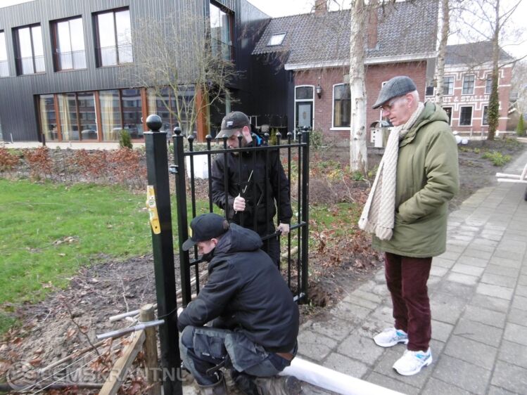 Onder toezicht van Willem Fokkens (NIK) en Tom Dijkstra Historische Vereniging Loppersum) is het hek (voorzien van de Davidster) op z’n plek gezet.