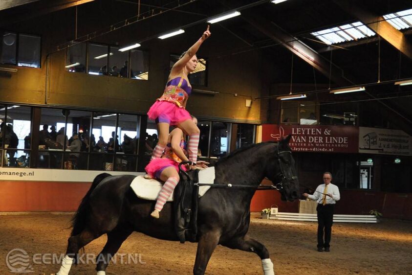 Dronten – Tijdens de voltige wedstrijd bij de Flevoruiters in Dronten hebben Marie Christine Spraakman en Fleur Medema hebben in de duo klasse de 1e plaats behaald met cijfer 6,3 en Silke Spijk een 2e plaats bij de solo’s met cijfer 5,8. Met name de kuren op muziek werden uitstekend uitgevoerd.