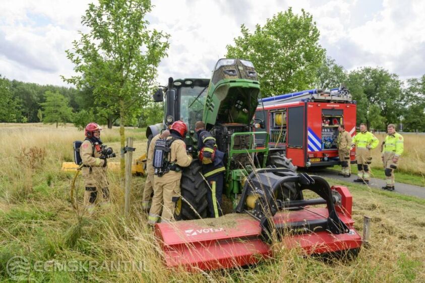De chauffeur stopte de trekker waarna het vuur snel was verdwenen. De brandweer kwam met spoed ter plaatse en heeft na het verwijderen van enkele kappen nog nabluswerkzaamheden verricht.