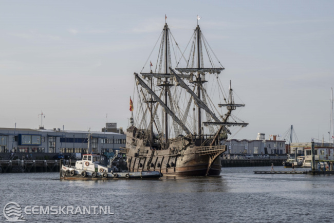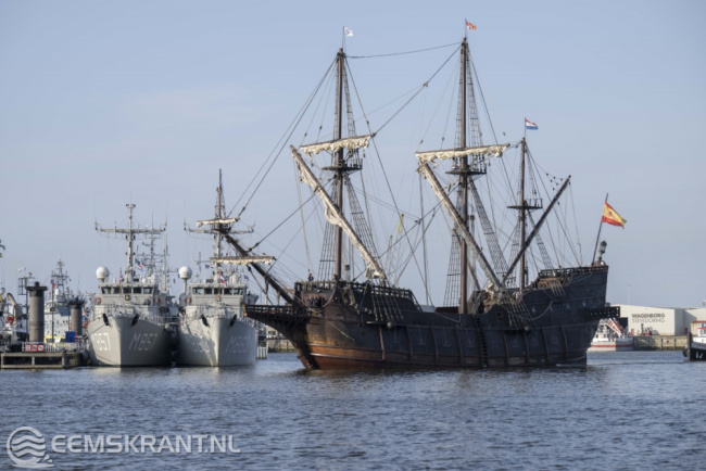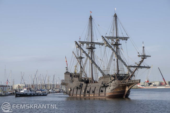 Deze twee schepen zullen de haven van Delfzijl sieren tot 4 september, voordat ze verder varen op hun reis. Het betreft de houten replica van het ‘Galeon Andalucia’ en de meer dan veertig meter lange driemastschoener genaamd ‘Pascual Flores’. Beide schepen zijn eigendom van een Spaanse stichting die zich specialiseert in het bouwen van houten replica’s en het restaureren van historische schepen. Deze zomer maken ze een toer door Europa om de maritieme geschiedenis tot leven te brengen.