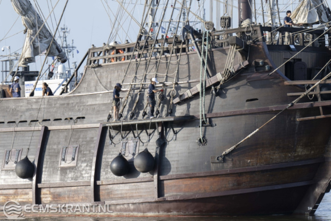 Het ‘Galeon Andalucia’, gebouwd in 2010, is een indrukwekkende houten replica van de iconische Spaanse schepen die eeuwen geleden de wateren tussen Europa, Amerika en Azië bevoeren om handel te drijven. Het schip vertrouwt volledig op de kracht van de wind, net zoals dat in vervlogen tijden gebeurde. Jeannette Blijdorp-Jonker, directeur van ‘Tall Ships’, die beide schepen naar Delfzijl heeft gehaald, benadrukt de historische authenticiteit van dit avontuur.