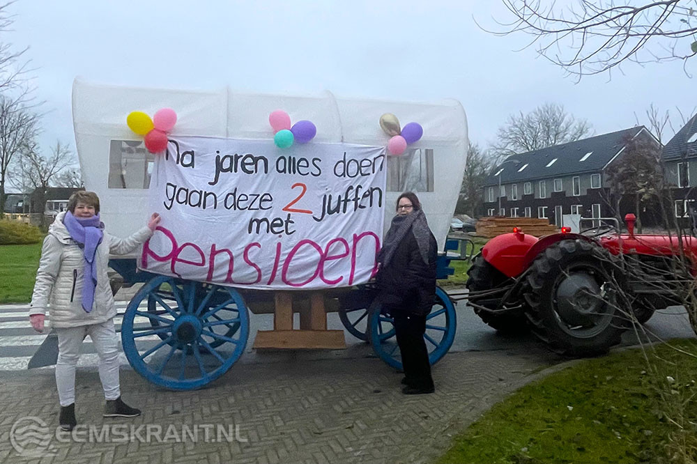 Juf Klaassiena werkte maar liefst 36 jaar in Stedum, terwijl juf Petra op diverse scholen in Noord-Groningen actief was. Voor hun laatste schooldag werden de juffen in een feestelijk versierde huifkar naar school gebracht. De kinderen genoten van een vrolijke dag met een springkussen en poffertjes als speciale lunch.
