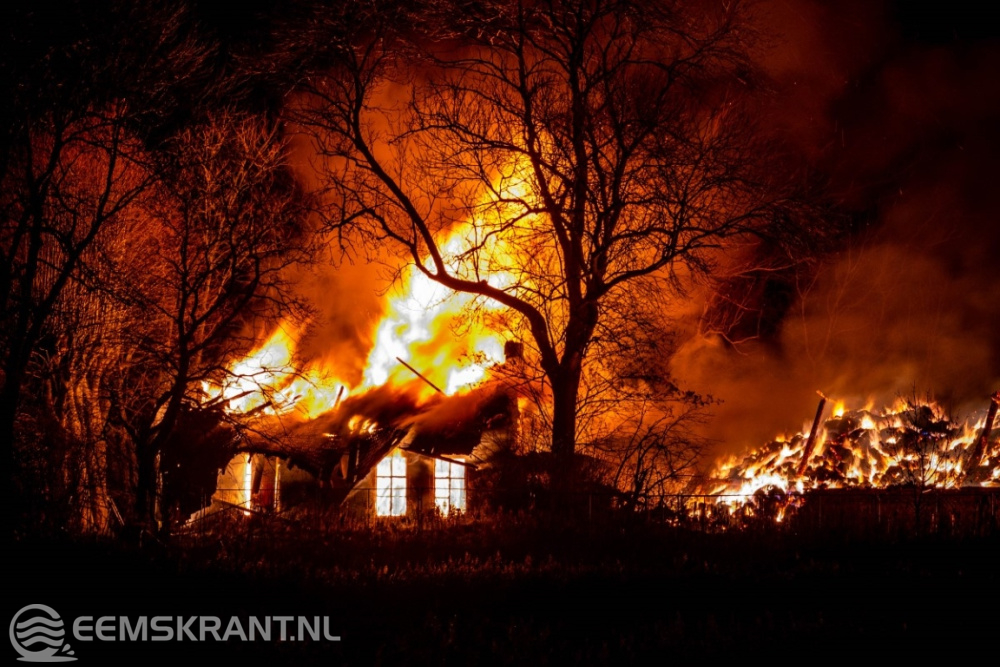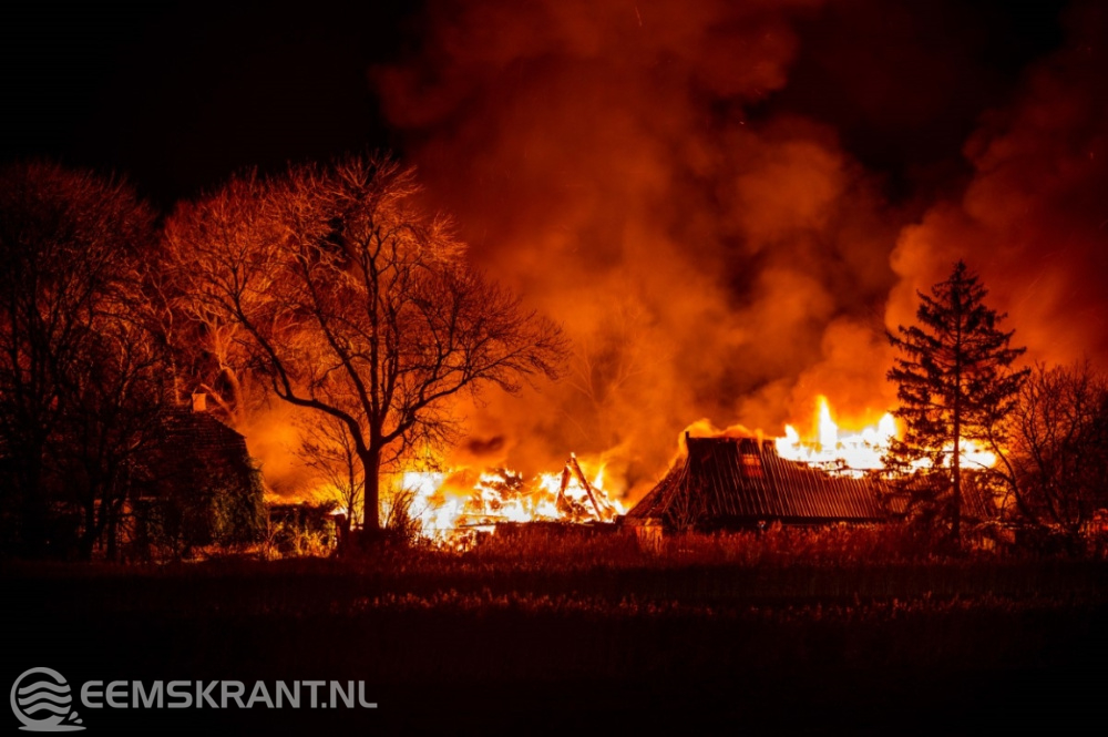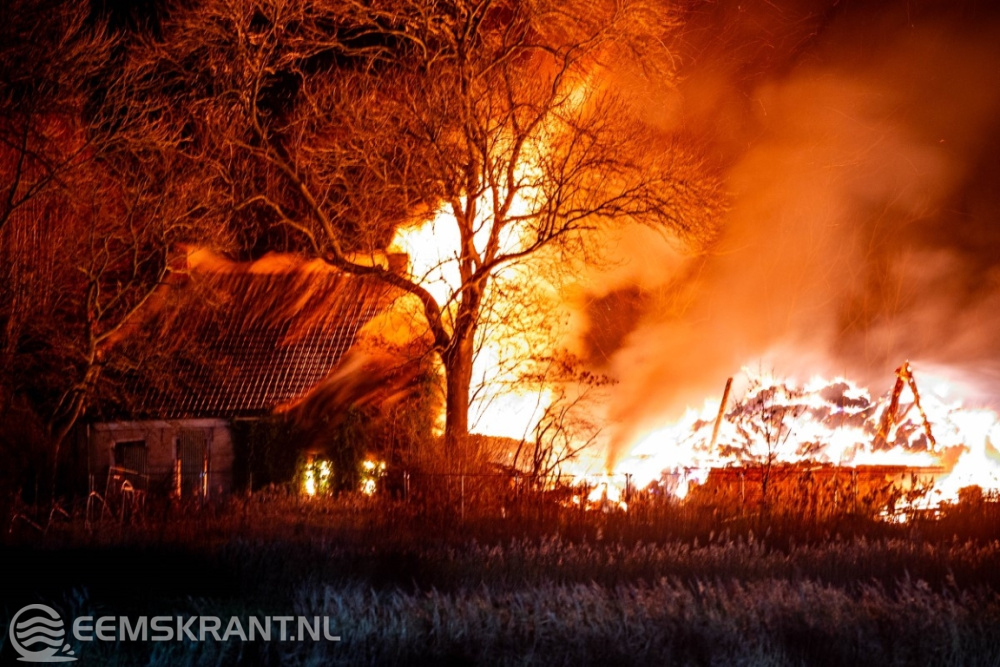 Ten Boer – In de nacht van zaterdag op zondag is de brandweer gealarmeerd voor een uitslaande brand in een leegstaande boerderij aan de Rijksweg (N360) bij Ten Boer.
