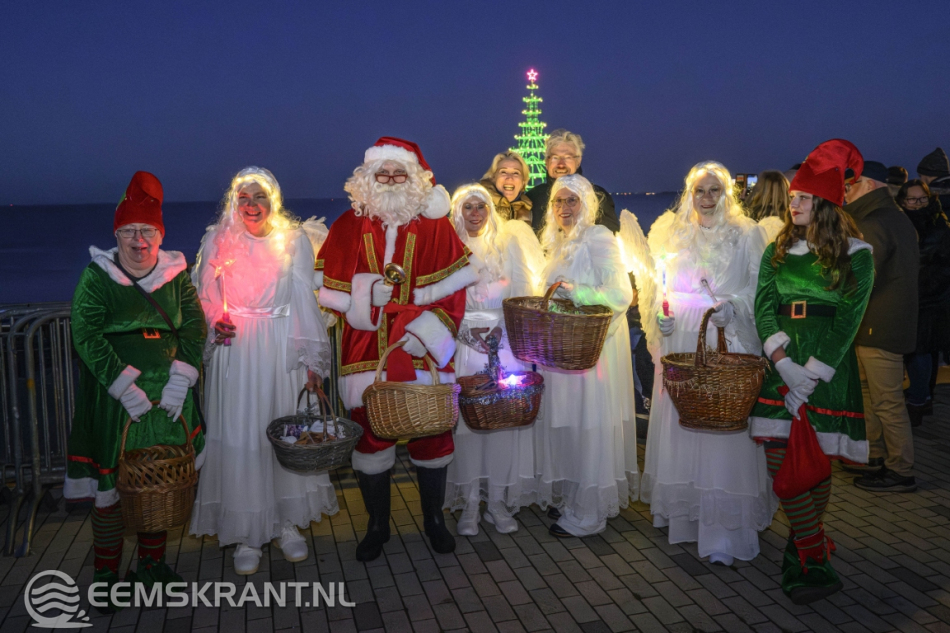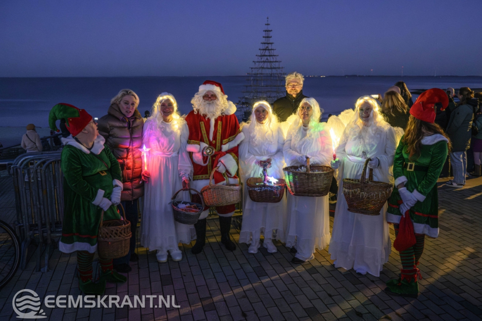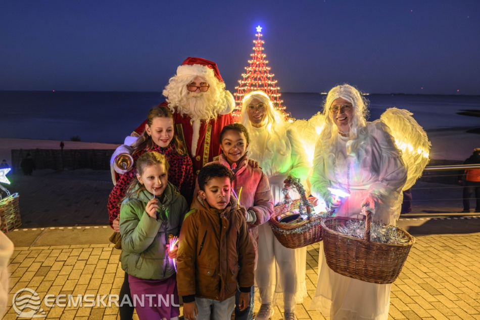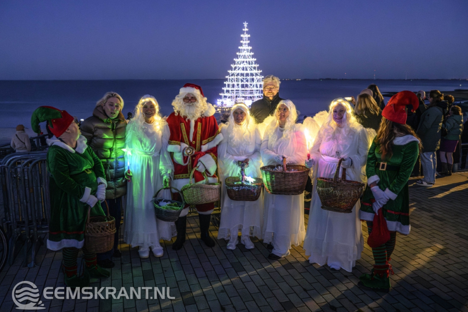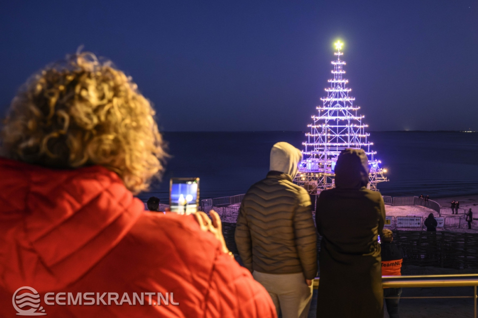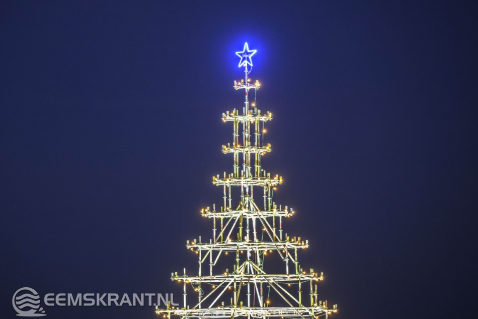 Delfzijl – Aansluitend op de ontvangst van de Kerstman in Delfzijl is zaterdag op het stadsstrand de verlichting ontstoken van wat volgens de organisatie de grootste en meest bijzondere kerstboom van de provincie Groningen is. De constructie, volledig opgebouwd uit steigers, heeft een hoogte van circa 25 meter en vormt een opvallende blikvanger aan de Eems.