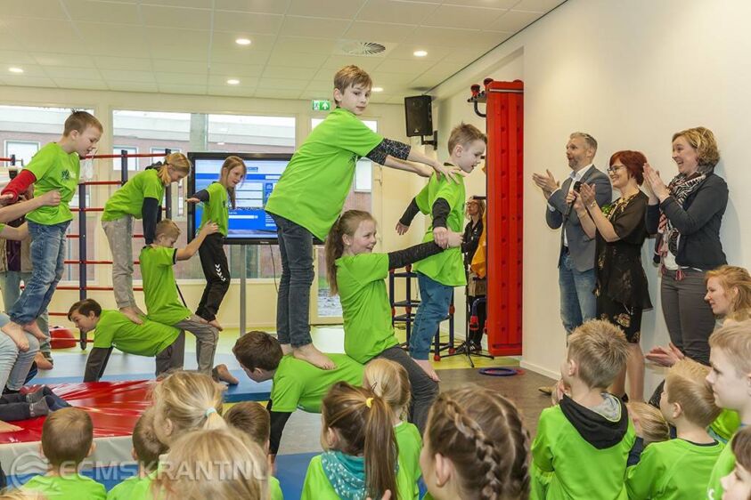 Aansluitend vertoonden de leerlingen met hulp van jeugdcircus Santelli een spectaculaire act met acrobatische oefeningen. Hierna werd de vlag met daarop het nieuwe logo van GBS Klim-op onthuld door een leerling en wethouder Schollema. Ouders en overige aanwezigen namen vervolgens een kijkje in de school. Alle leerlingen kregen de rest van de ochtend een creatieve workshop in hun klaslokaal.